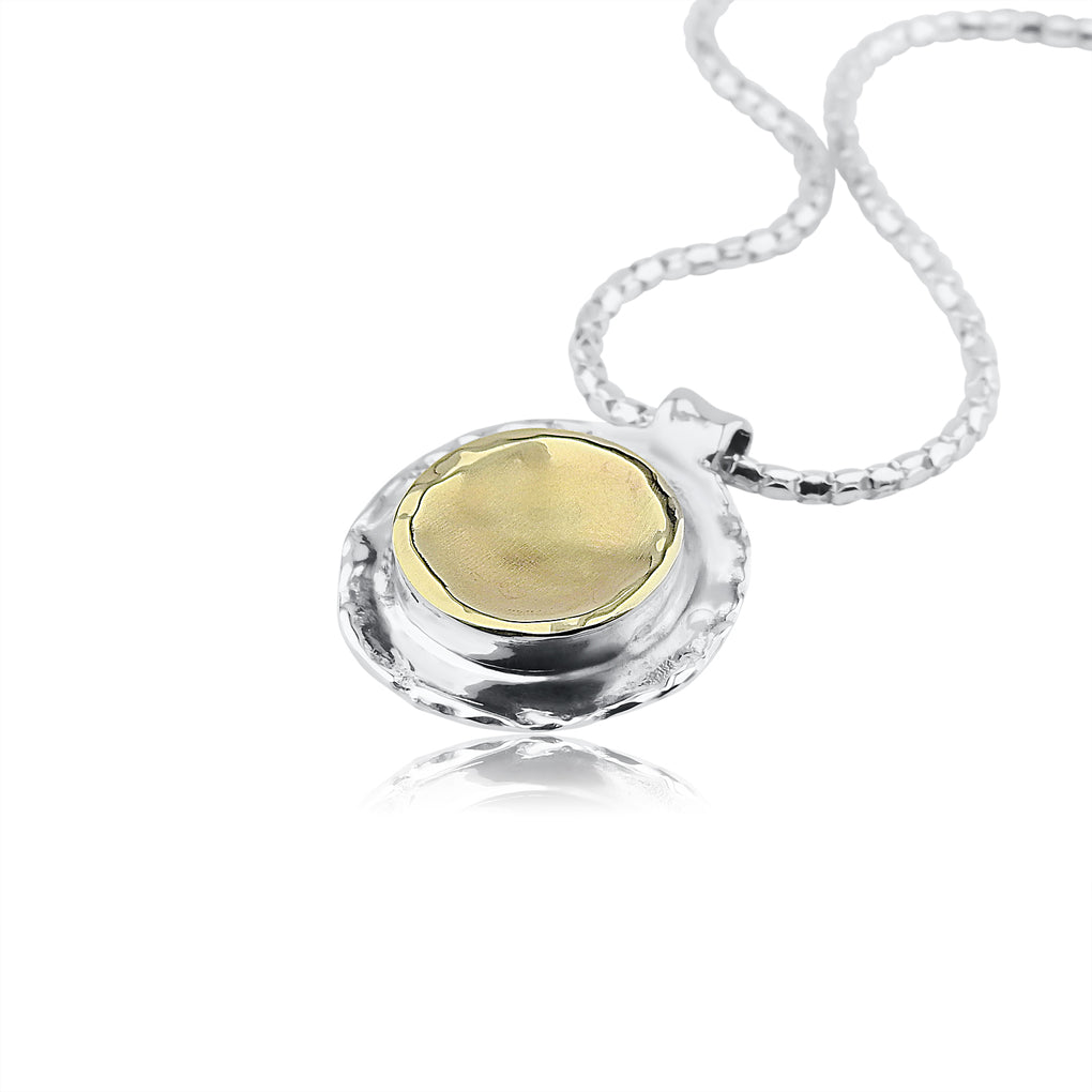 שרשרת כסף ועליה תליון כסף גדול בשילוב זהב