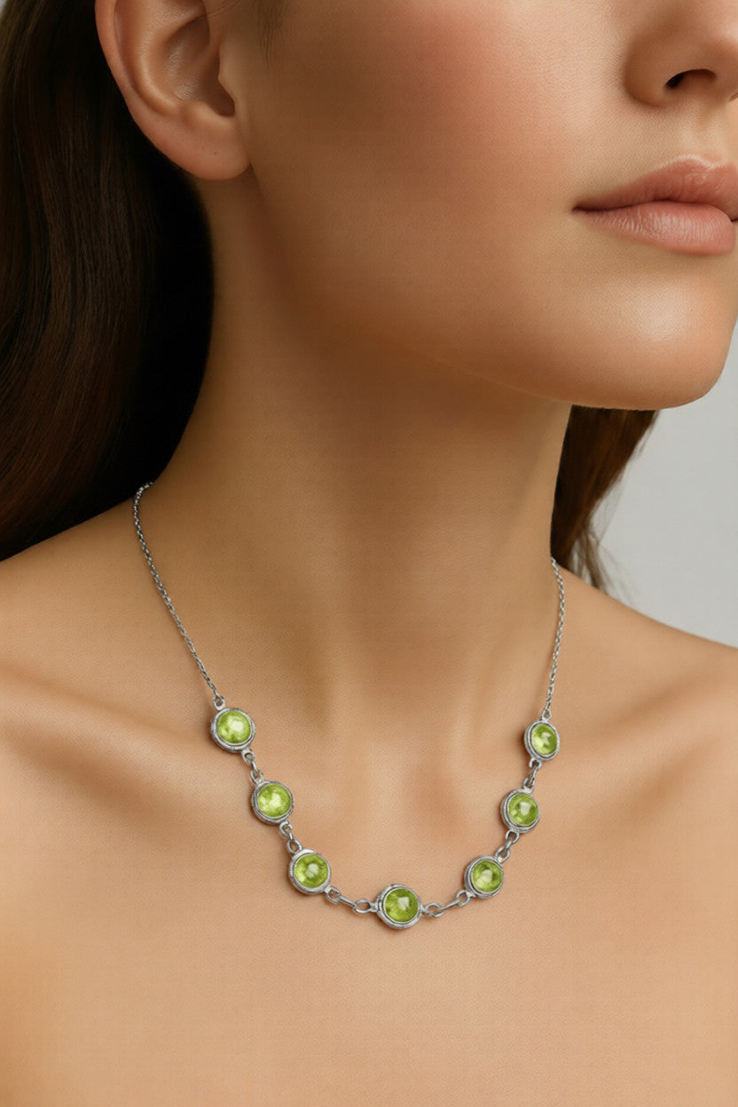 שרשרת שבע אבני פרידוט – כסף טהור 999
