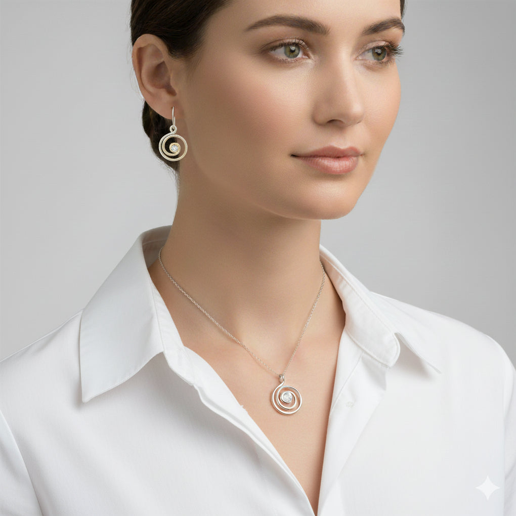 שרשרת כסף טהור, בצורת ספירלה שבמרכזה זירקוניה מנצנצת בגודל 4 מ״מ